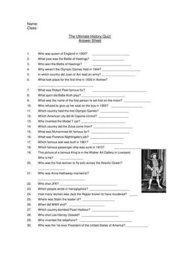 And if you're looking for a free complete pub quiz to run form . Which english football league team holds the nickname the cobblers? Who scored the fastest goal in premier league history after just 7.69 seconds? Who was prime minister of the uk for most of the second world war? Which structures were built in medieval times . How much do you know about the past of jolly old england? You will find the answers below, so no scrolling down and cheating in advance. Who was henry vii's last wife? We've collated 30 quiz answers and questions around the topic of history. Who was the youngest prime minister in british . You'll find three rounds of questions and answers covering high street history from the victorians to. How far back does your knowledge of english history go? · how many wives did henry viii have?